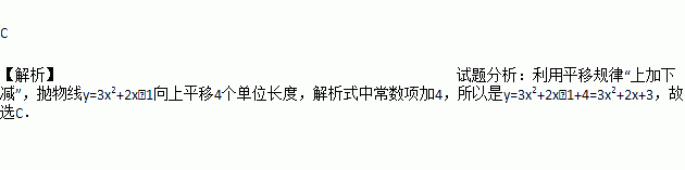 抛物线y=3x2+2x-1向上平移4个单位长度后的函数解析式为( )