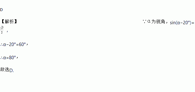 已知α为锐角,sin(α-20°)=