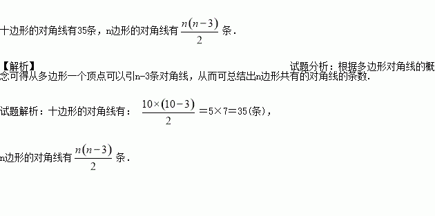 通过分析,请你说说十边形的对角线有多少条.你能总结出n边形的对角线有多少条吗?