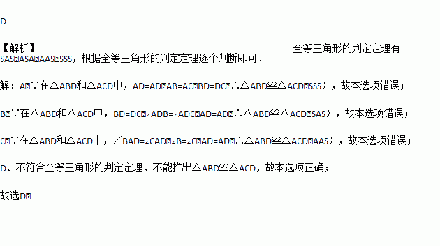 如图,在下列条件中,不能证明△ABD≌△ACD的是( )