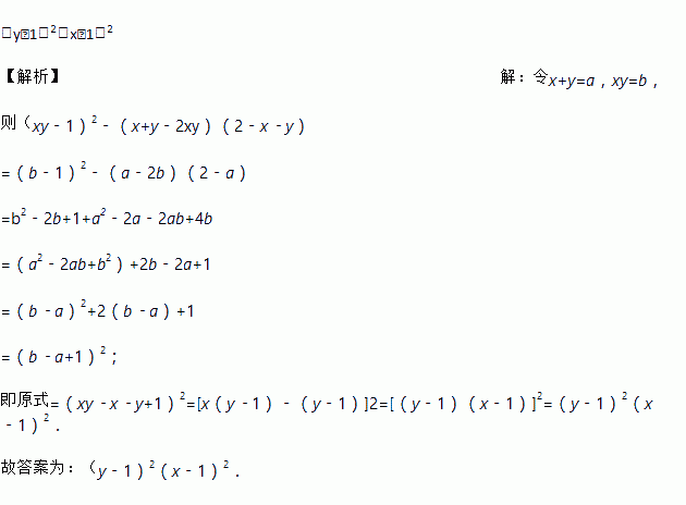 分解因式(xy﹣1)2﹣(x+y﹣2xy)(2﹣x﹣y)=_____.