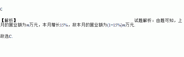 某商店上月的营业额是m万元,本月比上月增长15%,那么本月的营业额是( )