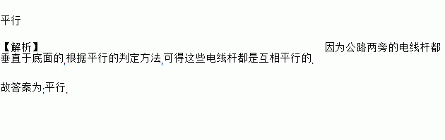 公路两旁的两根电线杆位置关系是________.