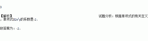 3 【解析】试题分析:根据单项式的有关定义,单项式﹣2x2y的系数是-2. 故答案为:-2. 考点:单项式的定义.根治水土流失刻不容缓,目前全国水土流失面积已达36700000米2,用科学记数法表示为______米2.