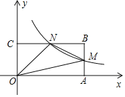 如图,在平面直角坐标系中,矩形OABC的顶点B的坐标为(4,2),直线y=﹣x+与边AB,BC分别相交于点M,N,函数y=(x>0)的图象过点M.