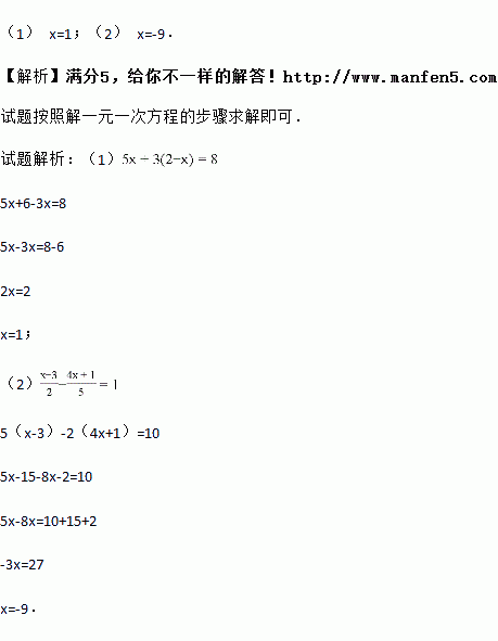 (1)5x+3(2﹣x)=8