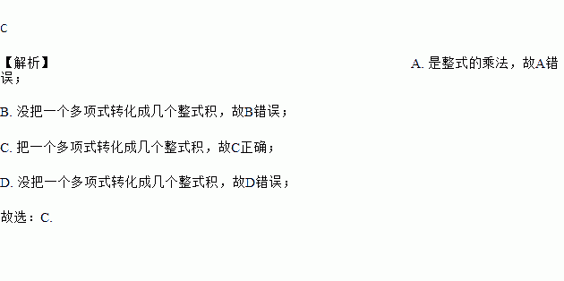 ÏÂÁи÷ʽ´Ó×óµ½ÓҵıäÐÎÖУ¬ÊÇÒòʽ·Ö½âµÄÊÇ£¨ £©.
