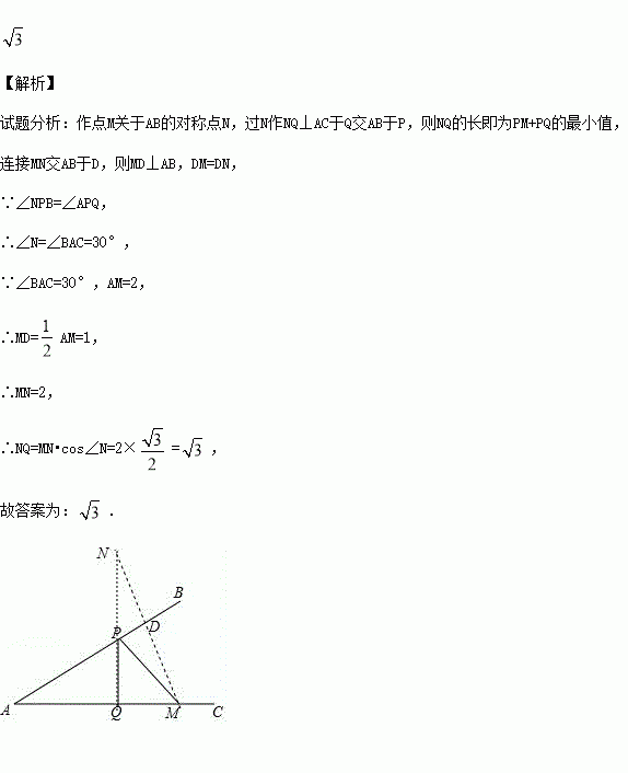 如图, ,为上一点, ,点是上的一动点, ,垂足为点,则的最小值为 .