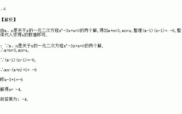 已知、是关于的一元二次方程的两个解,若,则的值为________.