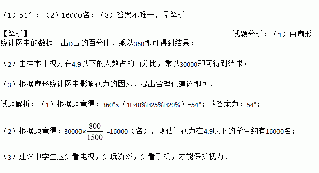 (3)根据扇形统计图信息,你觉得中学生应该如何保护视力?