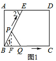 解答 解:当0<t≤5时,点P在线段BE上运动.如图(1)所示:过点P作PF⊥BQ,垂足为F.![]()