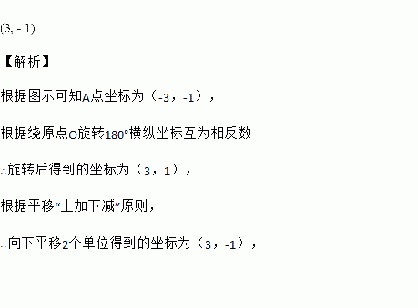 如图,将一朵小花放置在平面直角坐标系中第三象限内的甲位置,先将它绕原点O旋转到乙位置,再将它向下平移2个单位长到丙位置,则小花顶点A在丙位置中的对应点的坐标为______.