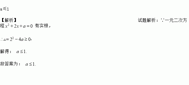 一元二次方程x2+2x+a=0有实根,则a的取值范围是_____.