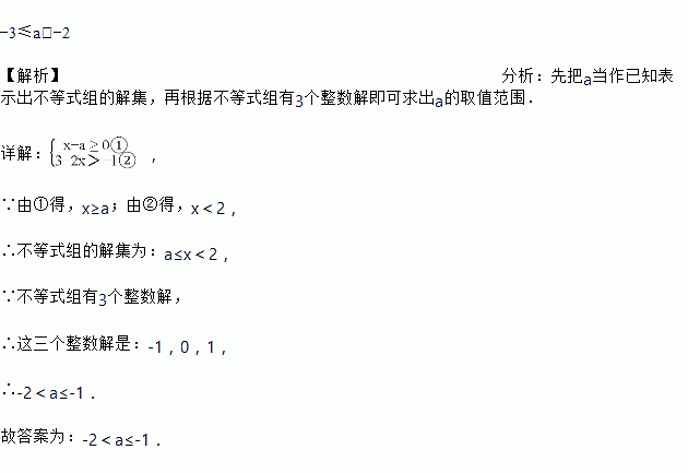 关于x的不等式组的整数解共有3个,则a的取值范围是_____________.