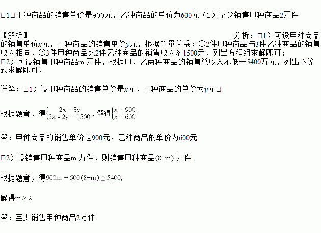 £¨2£©Èô¼×¡¢ÒÒÁ½ÖÖÉÌÆ·µÄÏúÊÛ×ÜÊÕÈë²»µÍÓÚ5400ÍòÔª£¬ÔòÖÁÉÙÏúÊÛ¼×ÖÖÉÌÆ·¶àÉÙÍò¼þ£¿