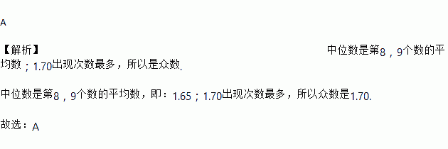 这些运动员跳高成绩的中位数和众数分别是( )
