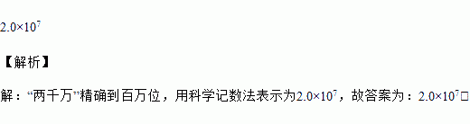 人工智能AlphaGo,因在人机大战中大胜韩国围棋手李世石和我国选手柯洁而声名显赫,它具有自我对弈的学习能力,决战前已做了两千万局的训练(等同于一个近千年的训练量)此处“两千万”用科学记数法表示为_____(精确到百万位).