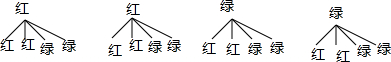 共有16种等可能的结果数,其中1个绿球和1个红球的结果数为8,