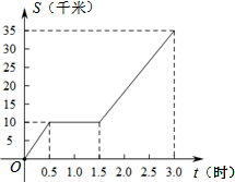 一辆自行车在公路上行驶,中途发生了故障,停下修理一段时间后继续前进.已知行驶路程S(千米)与所用时间t(时)的函数关系的图象如图所示,那么自行车发生故障后继续前进的速度为( )