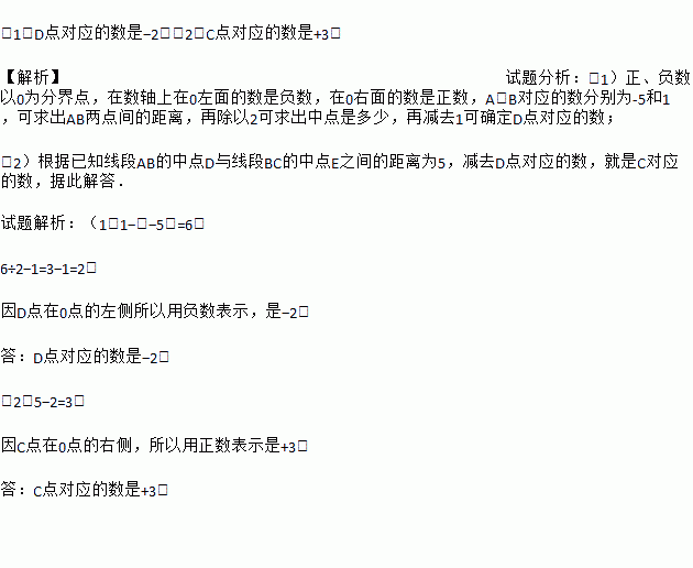 数轴上点A、B、C的位置如图所示,A、B对应的数分别为?5和1,已知线段AB的中点D与线段BC的中点E之间的距离为5.