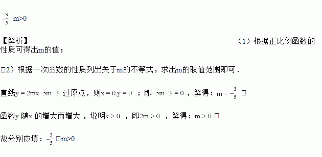已知函数,当= _______ 时,直线过原点;为 _______ 数时,函数随的增大而增大 .