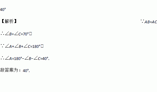 如图,△ABC中,AB=AC,∠B=70°,则∠A=______