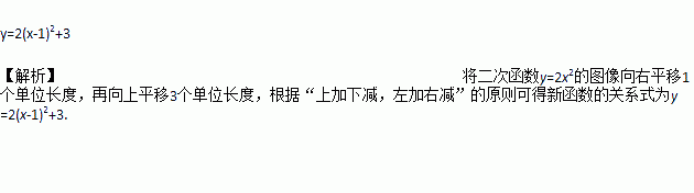 在平面直角坐标系中,将二次函数的图像向右平移1个单位长度,再向上平移3个单位长度,所得图像的函数关系式是____________________.