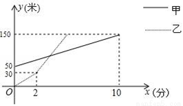 甲、乙两人分别从两地同时出发登山,甲、乙两人距山脚的竖直高度y(米)与登山时间x(分)之间的图象如图所示,若甲的速度一直保持不变,乙出发2分钟后加速登山,且速度是甲速度的4倍,那么他们出发_____分钟时,乙追上了甲.