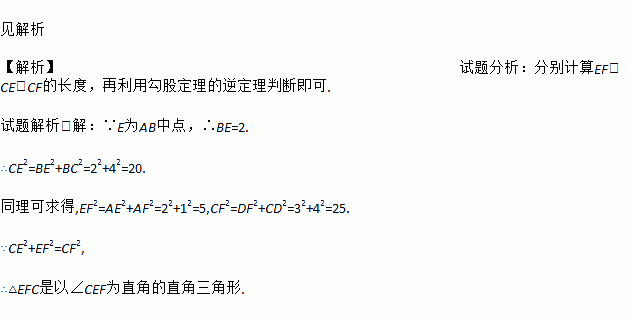如图,已知正方形ABCD的边长为4,E为AB中点,F为AD上的一点,且AF=AD,试判断△EFC的形状.