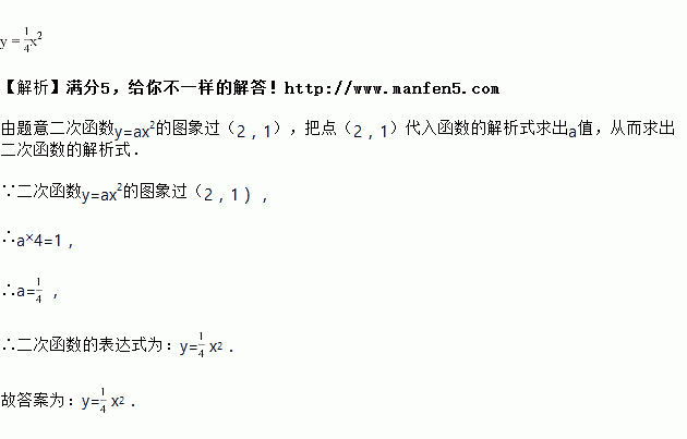 二次函数y=a x2的图象过(2,1),则二次函数的表达式为____________.