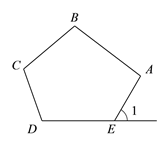 如图,∠1是五边形ABCDE的一个外角.若∠1=60°,则∠A+∠B+∠C+∠D的度数为_________.