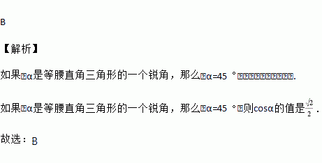 如果∠α是等腰直角三角形的一个锐角,则cosα的值是()