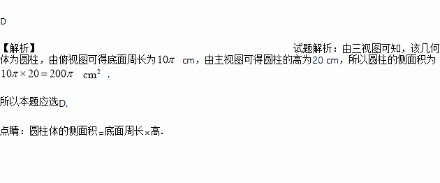 A. 200cm2 B. 600cm2 C. 100πcm2 D. 200πcm2