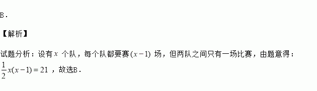 学校要组织足球比赛,赛制为单循环形式(每两队之间赛一场).计划安排21场比赛,应邀请多少个球队参赛?设邀请x个球队参赛.根据题意,下面所列方程正确的是( )