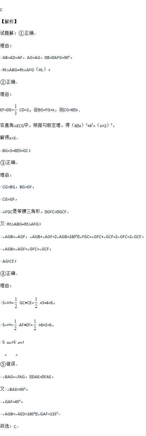 ①△ABG≌△AFG;②BG=CG;③AG∥CF;④S△EGC=S△AFE;⑤∠AGB+∠AED=145°.