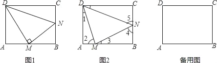 (1)如图1,若M为AB中点,且DM⊥MN.请在图中找出两对相似三角形: