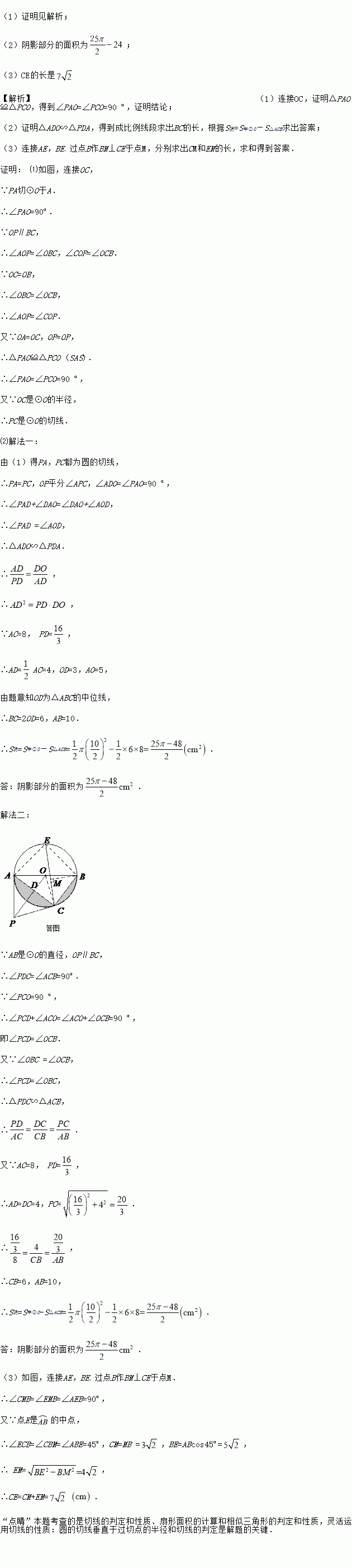 如图,点P是⊙O 外一点,PA切⊙O于点A,AB是⊙O的直径,连接OP,过点B作BC∥OP交⊙O于点C,连接AC交OP于点D.