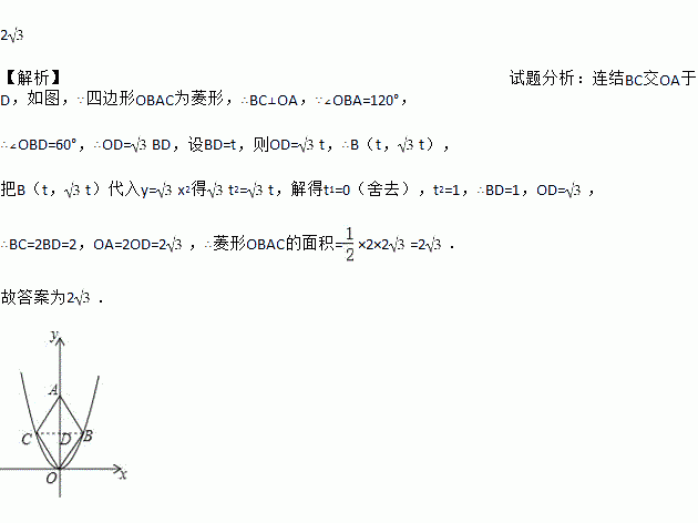 二次函数y=x2的图象如图,点O为坐标原点,点A在y轴的正半轴上,点B、C在二次函数y=x2的图象上,四边形OBAC为菱形,且∠OBA=120°,则菱形OBAC的面积是______.