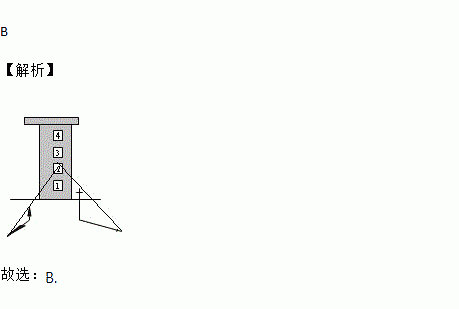 一幢4层楼房只有一个房间亮着灯,一棵小树和一根电线杆在窗口灯光下的影子如图所示,则亮着灯的房间是( )