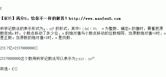 A. 253.7×10 B. 25.37×10 C. 2.537×10 D. 2.537×10