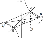 分析:易得点A的坐标,把点A的坐标代入双曲线解析式可得k的值,根据A,B两点关于原点对称也就得到了点B的坐标,根据对角线互相平分的四边形是平行四边形可得S△APB=3,根据两点间的距离公式可得AB的长度,进而得到点P到直线AB的距离,设出点P的坐标根据点到直线的距离公式即可求得点P的坐标.
