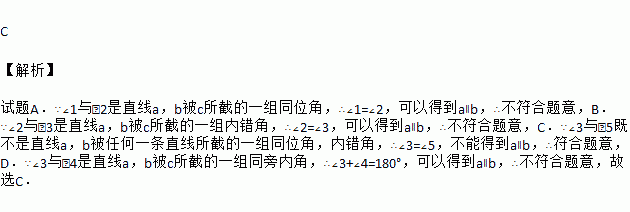 A. ∠1=∠2 B. ∠2=∠3 C. ∠3=∠5 D. ∠3+∠4=180°