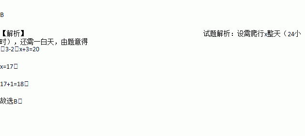 一只蚂蚁从地面开始爬树,它每天不停地往上爬,不幸的是,它每天白天能往上爬3米,可是一到夜里就要滑下2米,但是蚂蚁还是坚持往上爬,这棵树高是20米,蚂蚁从清晨开始从地面往上爬,它需要几天才能爬到树的最高处? ( )