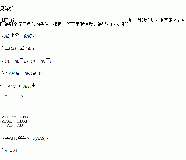 已知:如图,△ABC中,AD平分∠BAC,DE⊥AB于E,DF⊥AC于F,连接EF.