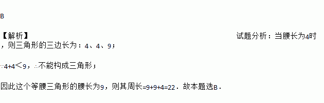 等腰三角形的一边为4,另一边为9,则这个三角形的周长为( )