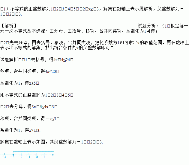 (1)求不等式4(x+1)≤24的正整数解;