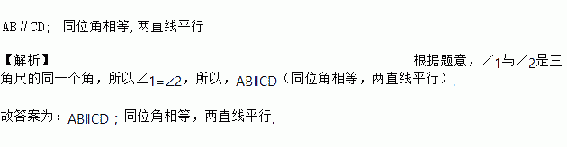 如图,用直尺和三角尺作直线AB,CD,从图中可知,直线AB与直线CD的位置关系为__________,理由是_________.