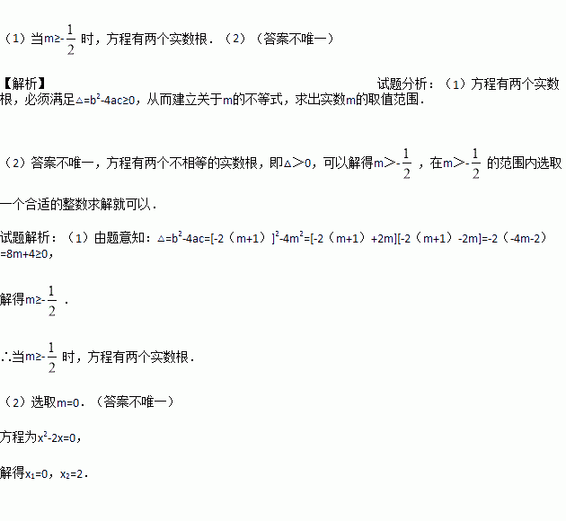 (2)为m选取一个合适的整数,使方程有两个不相等的实数根,并求这两个根.