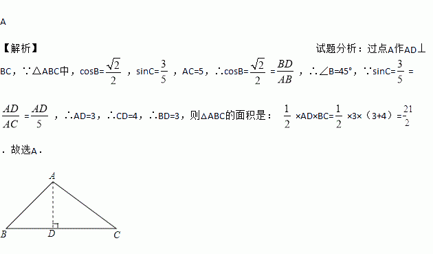 如图所示,在△ABC中, cos B=,sin C=,BC=7,则△ABC的面积是( )
