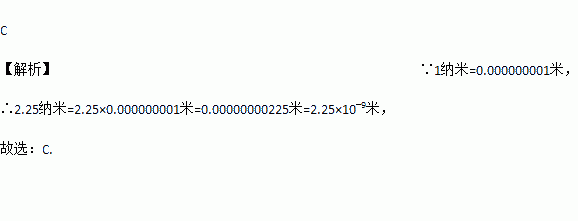 米,则2.25纳米用科学记数法表示为( )米